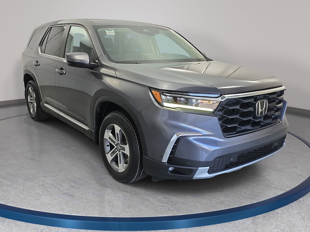 Clean CARFAX. CARFAX One-Owner. Certified. Modern Steel Metallic 2023 Honda Pilot EX-L 8 Passenger FWD 10-Speed Automatic 3.5L V6 DOHC 24V 3rd row seats: split-bench, 4-Wheel Disc Brakes, 9 Speakers, ABS brakes, Adaptive Cruise Control: Adaptive Cruise Control (ACC) with Low-Speed Follow, Air Conditioning, Alloy wheels, AM/FM radio: SiriusXM, Apple CarPlay/Android Auto, Auto High-beam Headlights, Auto-dimming Rear-View mirror, Automatic temperature control, Blind Spot Information (BSI) System warning, Brake assist, Delay-off headlights, Driver door bin, Driver vanity mirror, Dual front impact airbags, Electronic Stability Control, Emergency communication system: HondaLink Assist, Front Bucket Seats, Front Center Armrest, Front dual zone A/C, Front reading lights, Fully automatic headlights, Garage door transmitter: HomeLink, Heated door mirrors, Heated Front Bucket Seats, Heated front seats, Illuminated entry, Lane departure: Lane Keeping Assist System (LKAS) active, Memory seat, Outside temperature display, Power driver seat, Power Liftgate, Power steering, Power windows, Radio: 245-Watt Audio System, Remote keyless entry, Speed control, Steering wheel mounted audio controls, Wheels: 18" Machined Face Pewter Gray.