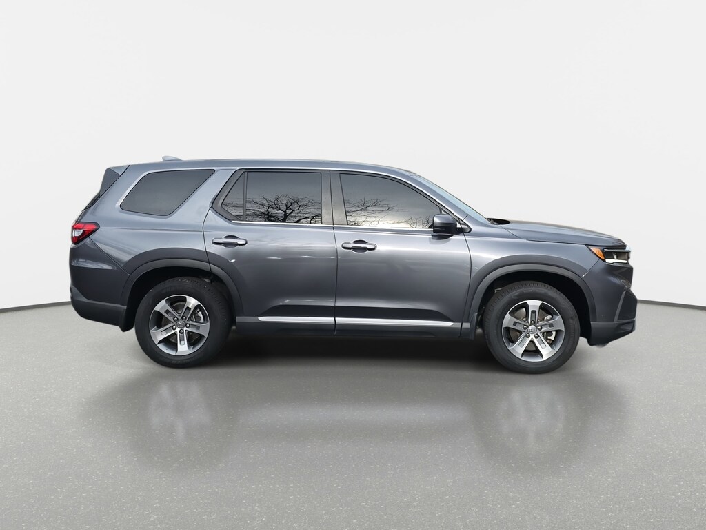 Clean CARFAX. CARFAX One-Owner. Certified. Modern Steel Metallic 2024 Honda Pilot EX-L 7 Passenger FWD 10-Speed Automatic 3.5L V6 DOHC 24V 3rd row seats: split-bench, 4-Wheel Disc Brakes, ABS brakes, Air Conditioning, Alloy wheels, AM/FM radio: SiriusXM, Apple CarPlay/Android Auto, Auto High-beam Headlights, Auto-dimming Rear-View mirror, Automatic temperature control, Blind Spot Information (BSI) System warning, Brake assist, Delay-off headlights, Exterior Parking Camera Rear, Four wheel independent suspension, Front dual zone A/C, Fully automatic headlights, Garage door transmitter: HomeLink, Heated Front Bucket Seats, Lane departure: Lane Keeping Assist System (LKAS) active, Memory seat, Power driver seat, Power steering, Rear window defroster, Reclining 3rd row seat, Remote keyless entry, Steering wheel mounted audio controls, Telescoping steering wheel, Wheels: 18" Pewter Gray Machined Face.