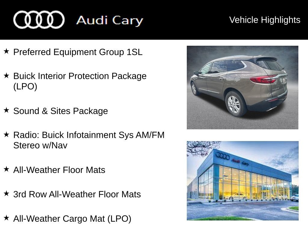 Champagne Gold Metallic 2020 Buick Enclave Essence 9-Speed Automatic 3.6L V6 SIDI VVT FWD CARFAX One-Owner. FWD, 3rd Row All-Weather Floor Mats, All-Weather Cargo Mat (LPO), All-Weather Floor Mats, Buick Interior Protection Package (LPO), Preferred Equipment Group 1SL, Radio: Buick Infotainment Sys AM/FM Stereo w/Nav, Sound & Sites Package.