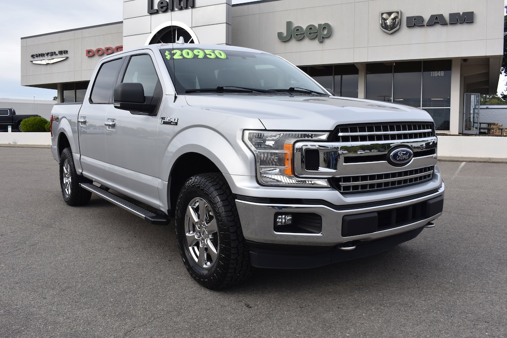 Clean CARFAX. CARFAX One-Owner. Ingot Silver 2018 Ford F-150 XLT 4WD 10-Speed Automatic 3.5L V6 EcoBoost 10-Way Power Driver & Passenger Seats, 110V/400W Outlet, 2-Bar Style Grille w/Chrome 2 Minor Bars, 4-Wheel Disc Brakes, 4.2" Productivity Screen in Instrument Cluster, 4x4 FX4 Off-Road Bodyside Decal, 6 Speakers, 8-Way Power Driver Seat, ABS brakes, Air Conditioning, Alloy wheels, AM/FM radio, Auto-Dimming Rear-View Mirror, Brake assist, Bumpers: chrome, CD player, Chrome Door & Tailgate Handles w/Body-Color Bezel, Chrome Step Bars, Class IV Trailer Hitch Receiver, Cloth 40/20/40 Front Seat, Compass, Delay-off headlights, Dual front impact airbags, Dual front side impact airbags, Electronic Locking w/3.55 Axle Ratio, Electronic Stability Control, Emergency communication system: 911 Assist, Equipment Group 302A Luxury, Extended Range 36 Gallon Fuel Tank, Exterior Parking Camera Rear, Fixed Backlight w/Privacy Glass, Front anti-roll bar, Front Center Armrest w/Storage, Front fog lights, Front wheel independent suspension, Fully automatic headlights, FX4 Off-Road Package, GVWR: 7,000 lbs Payload Package, Heated Front Seats, Higher-Capacity Radiator, Higher-Power Cooling Fans, Hill Descent Control, Integrated Trailer Brake Controller, Leather-Wrapped Steering Wheel, Low tire pressure warning, Max Trailer Tow Package, Occupant sensing airbag, Off-Road Tuned Front Shock Absorbers, Outside temperature display, Overhead airbag, Panic alarm, Power door mirrors, Power Glass Heated Sideview Mirrors, Power steering, Power windows, Power-Adjustable Pedals, Power-Sliding Rear Window, Pro Trailer Backup Assist, Radio data system, Radio: AM/FM Stereo/Single-CD Player, Radio: Single-CD/SiriusXM w/7 Speakers, Rear step bumper, Rear Under-Seat Storage, Rear Window Defroster, Remote keyless entry, Remote Start System, Reverse Sensing System, Security system, Single-Tip Chrome Exhaust, Speed control, Speed-sensing steering, Split folding rear seat, Steering wheel mounted audio controls, SYNC, SYNC 3, Tachometer, Tailgate Step w/Tailgate Lift Assist, Telescoping steering wheel, Tilt steering wheel, Traction control, Upgraded Front Stabilizer Bar, Variably intermittent wipers, Voice-Activated Touchscreen Navigation System, Voltmeter, Wheels: 17" Silver Painted Aluminum, Wheels: 18" Chrome-Like PVD, XLT Chrome Appearance Package.
