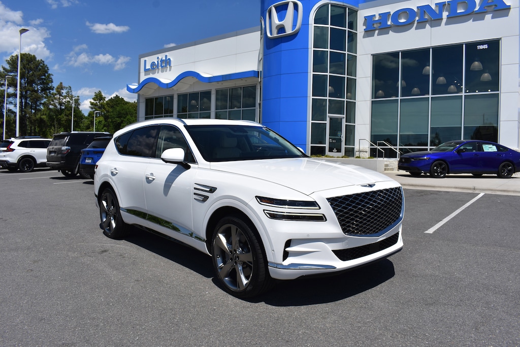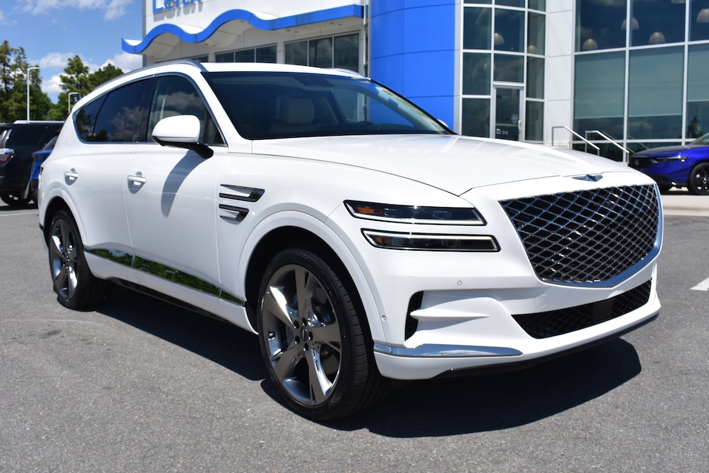 Uyuni White 2023 Genesis GV80 3.5T AWD 8-Speed Automatic 3.5L DOHC 12 Speakers, 3.909 Axle Ratio, 4-Wheel Disc Brakes, ABS brakes, Adaptive suspension, Advanced Package, Air Conditioning, Alloy wheels, AM/FM radio: SiriusXM, Android Auto & Apple CarPlay, Anti-whiplash front head restraints, Auto High-beam Headlights, Auto tilt-away steering wheel, Auto-dimming door mirrors, Auto-dimming Rear-View mirror, Automatic temperature control, Brake assist, Bumpers: body-color, Compass, Delay-off headlights, Dual front impact airbags, Dual front side impact airbags, Electronic Stability Control, Emergency communication system: Genesis Connected Services, Exterior Parking Camera Rear, Four wheel independent suspension, Front anti-roll bar, Front dual zone A/C, Fully automatic headlights, Garage door transmitter: HomeLink, Genuine wood console insert, Genuine wood dashboard insert, Genuine wood door panel insert, Heated & Ventilated Front Bucket Seats, Heated door mirrors, Heated front seats, Heated steering wheel, Illuminated entry, Knee airbag, Leather Seating Surfaces, Leather steering wheel, Leatherette Seating Surfaces, Low tire pressure warning, Memory seat, Navigation System, Occupant sensing airbag, Option Group 06, Outside temperature display, Overhead airbag, Panic alarm, Power door mirrors, Power driver seat, Power Liftgate, Power moonroof, Power passenger seat, Power steering, Power windows, Prestige Package, Radio data system, Radio: AM/FM/SiriusXM/HD Audio System, Radio: AM/FM/SiriusXM/HD Lexicon Prem Audio System, Rain sensing wipers, Rear air conditioning, Rear anti-roll bar, Rear side impact airbag, Rear window defroster, Rear window wiper, Remote keyless entry, Security system, Speed control, Speed-sensing steering, Speed-Sensitive Wipers, Split folding rear seat, Spoiler, Steering wheel memory, Steering wheel mounted audio controls, Tachometer, Telescoping steering wheel, Tilt steering wheel, Traction control, Trip computer, Turn signal indicator mirrors, Variably intermittent wipers, Ventilated front seats, Wheels: 20" x 8.5J Medium Metallic Gray Alloy.