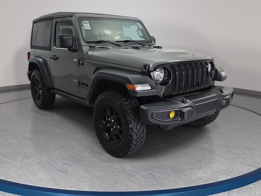 Sting-Gray Clearcoat 2021 Jeep Wrangler Willys Sport 4WD 6-Speed Manual 3.6L V6 24V VVT 4-Wheel Drive Swing Gate Decal, 97 MPH Vehicle Max Speed Calibration, Anti-Spin Differential Rear Axle, Black Grille, Black Trail Rated Badge, Deep Tint Sunscreen Windows, Matte Black Jeep Badge, Mold In Color Bumper w/Gloss Black, MOPAR All-Weather Floor Mats, Quick Order Package 23K Willys Sport, Wheels: 17" x 7.5" Moab Black Aluminum, Willys, Willys Hood Decal, Wrangler Decal.