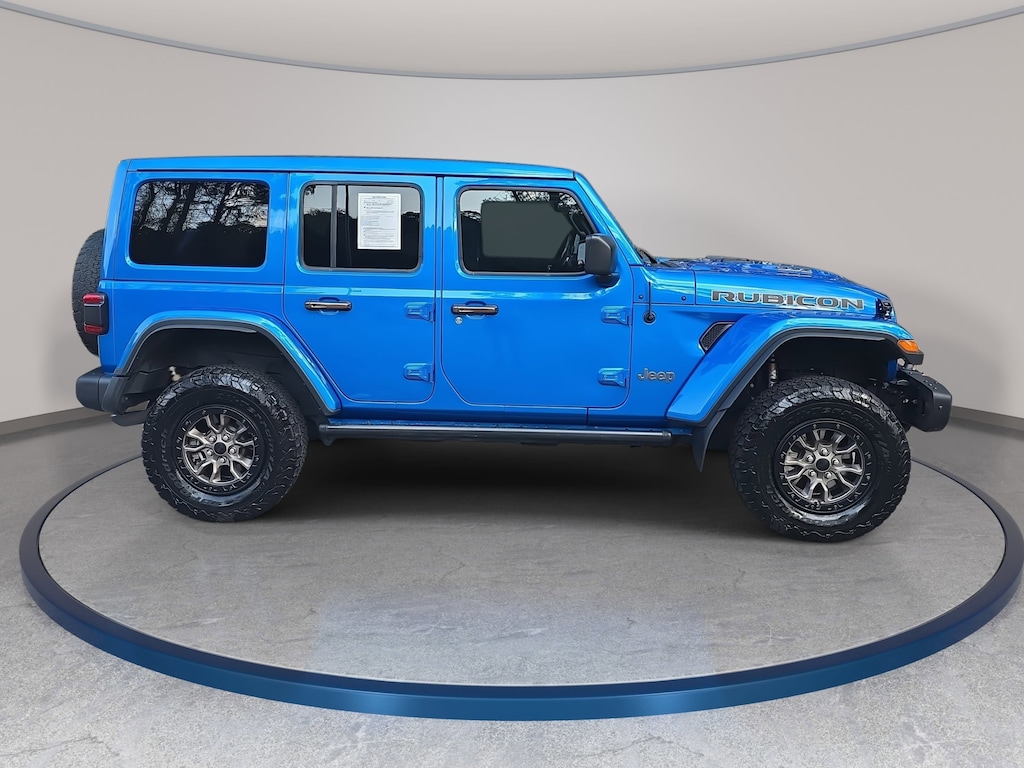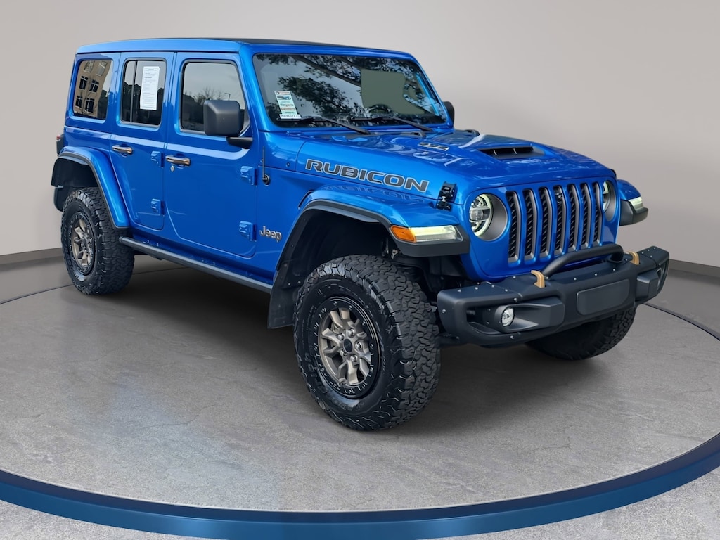 Clean CARFAX. Hydro Blue Pearl Coat 2021 Jeep Wrangler Unlimited Rubicon 392 4WD 8-Speed Automatic SRT HEMI 6.4L V8 MDS LOCAL TRADE IN, BACK OF CAMERA, LEATHER, HEATED SEATS, NAVIGATION, 4-WHEEL DRIVE, SMART KEY W PUSH BUTTON START, APPLE CARPLAY & ANDROID AUTO, BLIND SPOT MONITOR, NO ACCIDENTS, MUST SEE!, TOW PACKAGE, 7 & 4 Pin Wiring Harness, 9 Speakers, ABS brakes, Air Conditioning, Apple CarPlay/Android Auto, Auto High-beam Headlights, Auto-dimming Rear-View mirror, Automatic temperature control, Body Color 3-Piece Hard Top, Class II Receiver Hitch, Compass, Electronic Stability Control, Freedom Panel Storage Bag, Front dual zone A/C, Fully automatic headlights, Garage door transmitter, Heated front seats, Heated steering wheel, Integrated Off-Road Camera, Leather Shift Knob, Leather steering wheel, Leather Trimmed Bucket Seats, Manufacturer's Statement of Origin, MOPAR Hinge-Gate Reinforcement, Navigation System, No Soft Top, Outside temperature display, ParkView Rear Back-Up Camera, Power steering, Power Top Quarter Window Storage Bag, Power windows, Quick Order Package 27X, Radio: Uconnect 4C Nav w/8.4 Display, Rear seat center armrest, Rear Window Defroster, Rear window defroster, Rear Window Wiper/Washer, Remote keyless entry, Removable Rear Quarter Windows, Rubicon 392 Suspension, Sky 1-Touch Power Top, Steering wheel mounted audio controls, Telescoping steering wheel, Trailer Tow Package, Wheels: 17 x 7.5 Beadlock Capable.