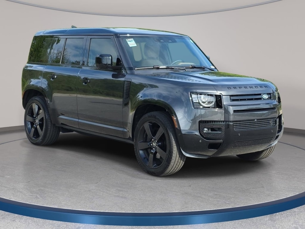 CARFAX One-Owner. Certified. Carpathian Gray Metallic 2025 LAND ROVER Defender 110 X-Dynamic SE AWD 8-Speed Automatic V8 Supercharged 1-OWNER, LOCAL TRADE IN, BACK UP CAMERA, LEATHER, HEATED SEATS, COOLED SEATS, PANORAMIC SUNROOF, 4-WHEEL DRIVE, SMART KEY W PUSH BUTTON START, DYNAMIC RADAR CRUISE CONTROL, LANE DEPARTURE ALERT W STEERING ASSIST, BLIND SPOT MONITOR W REAR CROSS TRAFFIC ALERT, APPLE CARPLAY & ANDROID AUTO, MEMORY SEAT, HOMELINK GARAGE DOOR TRANSMITTER, FRONT & REAR PARKING SENSORS, EXTENDED BLACK EXT PACK, FRONT CENTRE CONSOLE REFRIGERATOR COMPARTMENT, TOW HITCH RECEIVER, CABIN AIR PURIFICATION PLUS, AIR QUALITY SENSOR, TREE-ZONE CLIMATE CONTROL W REAR COOLING ASSIST, 1-OWNER, MUST SEE!, 12-Way Heated and Cooled Electric Memory Front Seats, 15 Speakers, ABS brakes, Adaptive suspension, Apple CarPlay & Android Auto, Auto High-beam Headlights, Auto tilt-away steering wheel, Automatic temperature control, Compass, Electronic Stability Control, Exterior Parking Camera Rear, Four wheel independent suspension, Front Center Armrest, Front dual zone A/C, Fully automatic headlights, Headlight cleaning, Heated steering wheel, Illuminated entry, Memory seat, Power moonroof, Radio: Meridian Surround Sound System, Rain sensing wipers, Split folding rear seat, Steering wheel memory, Steering wheel mounted audio controls, Traction control, Wheels: 22" Gloss Black Style 5098.