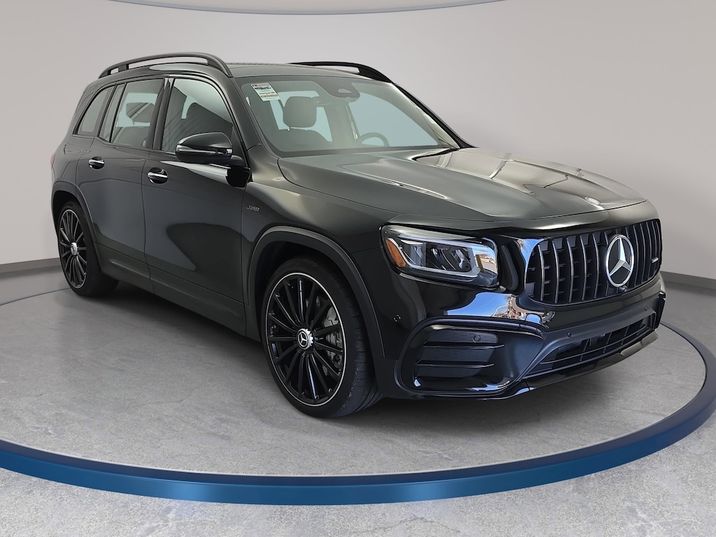 Night Black 2025 Mercedes-Benz GLB GLB 35 AMG® 4MATIC® I4 12 Speakers, 4-Wheel Disc Brakes, ABS brakes, Active Distance Assist DISTRONIC®, Adaptive suspension, Air Conditioning, AM/FM radio: SiriusXM, AMG® Night Package Plus, AMG® Specific Radiator Grille in Black, Apple CarPlay®/Android Auto®, Automatic temperature control, Brake assist, Bumpers: body-color, Child-Seat-Sensing Airbag, Driver door bin, Driver vanity mirror, Dual front impact airbags, Dual front side impact airbags, Emergency communication system: eCall Emergency System, Four wheel independent suspension, Front anti-roll bar, Front Bucket Seats, Front Center Armrest, Front dual zone A/C, Front reading lights, Front Splitter & Trim in High-Gloss Black, Front Sport Seats, Garage door transmitter, Heated door mirrors, Heated front seats, Heated Seats, Illuminated entry, Knee airbag, Low tire pressure warning, MB-TEX Upholstery w/Microfiber Inserts, Memory seat, Model & Brand Logo on Trunk in Black Chrome, Occupant sensing airbag, Outside temperature display, Overhead airbag, Overhead console, Passenger door bin, Passenger vanity mirror, Power door mirrors, Power driver seat, Power Liftgate, Power moonroof: Panorama, Power passenger seat, Power steering, Power windows, Premium audio system: MBUX, Radio data system, Radio: Mercedes-Benz User Experience (MBUX), Rear anti-roll bar, Rear reading lights, Rear window defroster, Remote keyless entry, SiriusXM Radio, Speed control, Speed-sensing steering, Split folding rear seat, Spoiler, Sport steering wheel, Steering wheel mounted audio controls, Tachometer, Telescoping steering wheel, Tilt steering wheel, Traction control, Trip computer, Turn signal indicator mirrors, Wheels: 21" AMG® Multi-Spoke Matte Black, Wireless Charging.