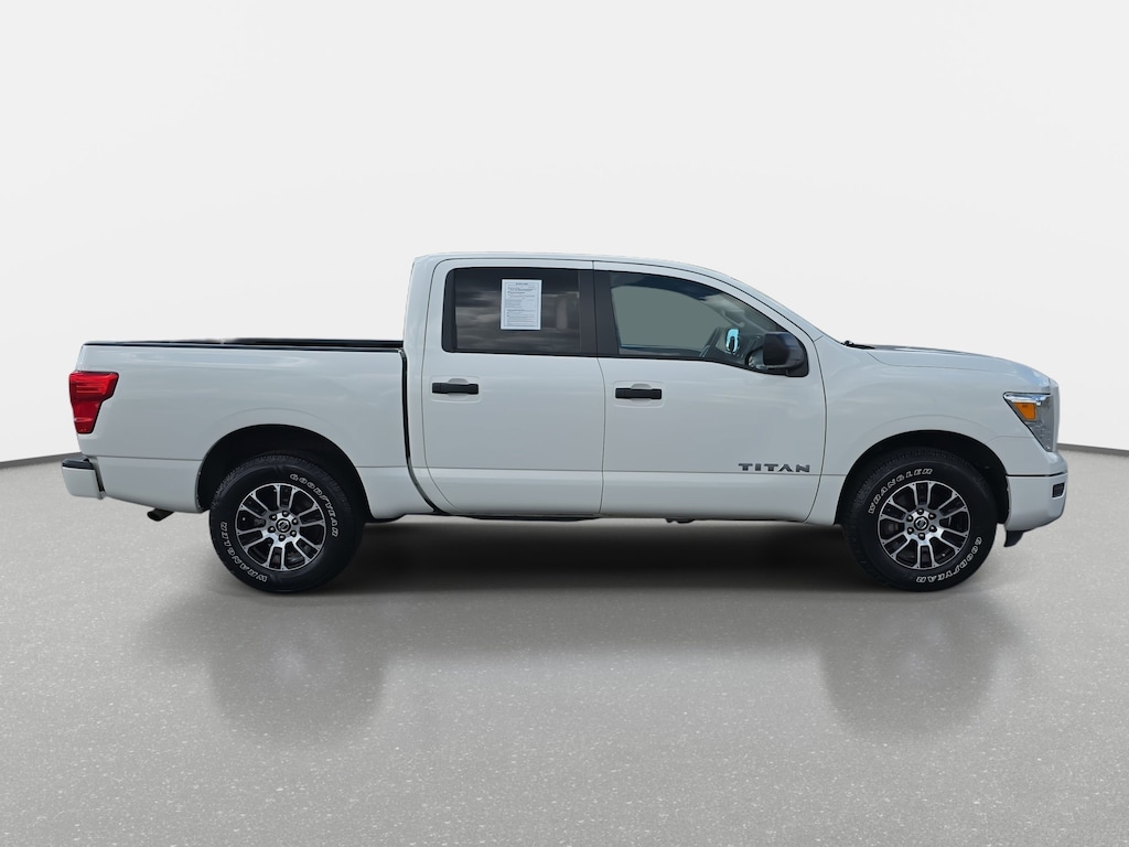 Glacier White 2022 Nissan Titan SV 4WD 9-Speed Automatic 5.6L V8 DOHC 32V 400hp 4WD, Alloy wheels, Auto High-beam Headlights, Blind Spot Warning, Cloth Seat Trim, Front Split Bench Seat (40/20/40), Fully automatic headlights, NissanConnect featuring Apple CarPlay and Android Auto, Rear Parking Sensors, Rear step bumper.