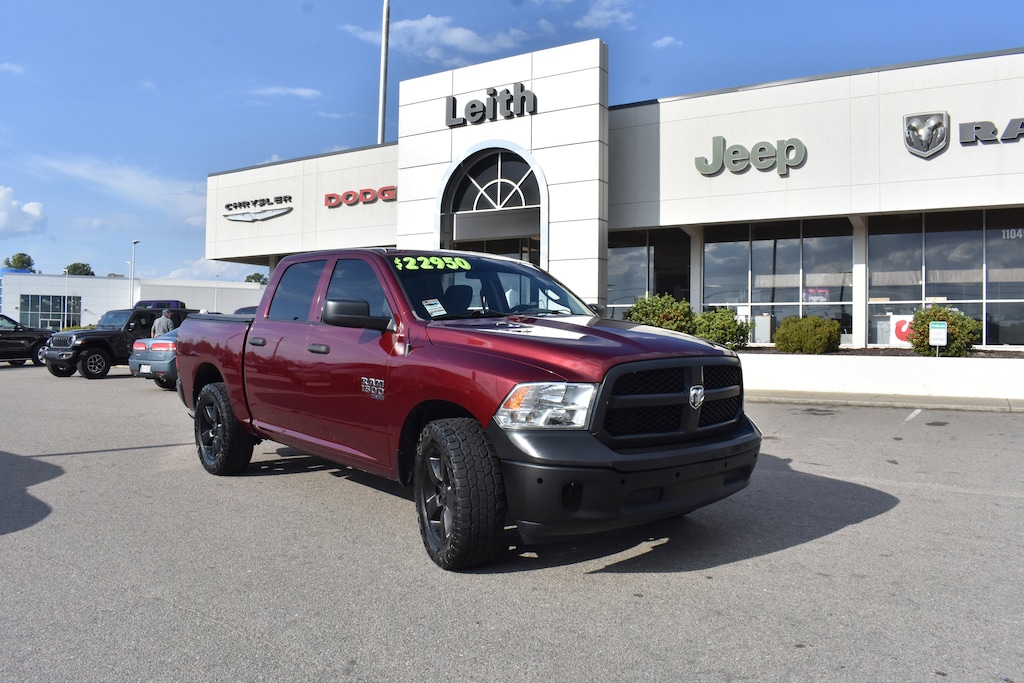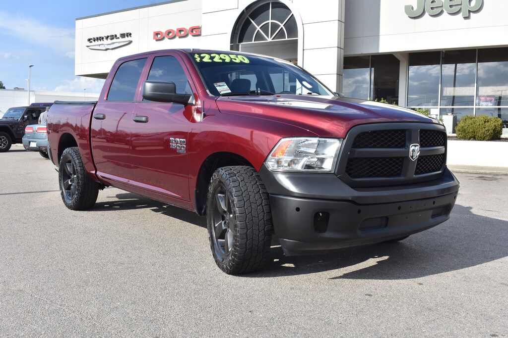 Clean CARFAX. Delmonico Red Pearlcoat 2019 Ram 1500 Classic Tradesman 4WD 8-Speed Automatic 3.6L V6 24V VVT 17" x 7" Steel Wheels, 3.21 Rear Axle Ratio, 4-Wheel Disc Brakes, 40/20/40 Split Bench Seat, 5.0" Touchscreen Display, 6 Speakers, ABS brakes, Active Grille Shutters, Air Conditioning, AM/FM radio, Auto-dimming Rear-View mirror, Black Exterior Mirrors, Brake assist, Carpet Floor Covering, Center Hub, Cloth 40/20/40 Bench Seat, Delay-off headlights, Dual front impact airbags, Dual front side impact airbags, Electronic Shift, Electronic Stability Control, Exterior Mirrors w/Heating Element, Front anti-roll bar, Front wheel independent suspension, Fully automatic headlights, GPS Antenna Input, Heated door mirrors, Heavy Duty Vinyl 40/20/40 Split Bench Seat, Integrated Voice Command w/Bluetooth, Low tire pressure warning, Manual Adjust Seats, Media Hub (USB, AUX), No Satellite Coverage w/AK/HI, Occupant sensing airbag, Overhead airbag, Overhead Console, ParkView Rear Back-Up Camera, Popular Equipment Group, Power door mirrors, Power steering, Power windows, Quick Order Package 22B Tradesman, Radio data system, Radio: 3.0, Radio: Uconnect 3 w/5" Display, Rear anti-roll bar, Rear Folding Seat, Rear step bumper, Rear View Day/Night Mirror, Remote Keyless Entry w/All-Secure, Remote USB Port - Charge Only, SiriusXM Satellite Radio, Speed control, Tachometer, Temperature & Compass Gauge, Tilt steering wheel, Tip Start, Traction control, Tradesman Package, Variably intermittent wipers, Voltmeter.