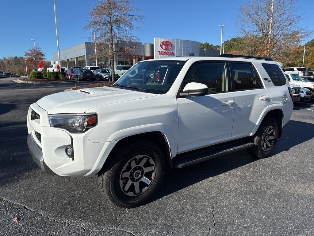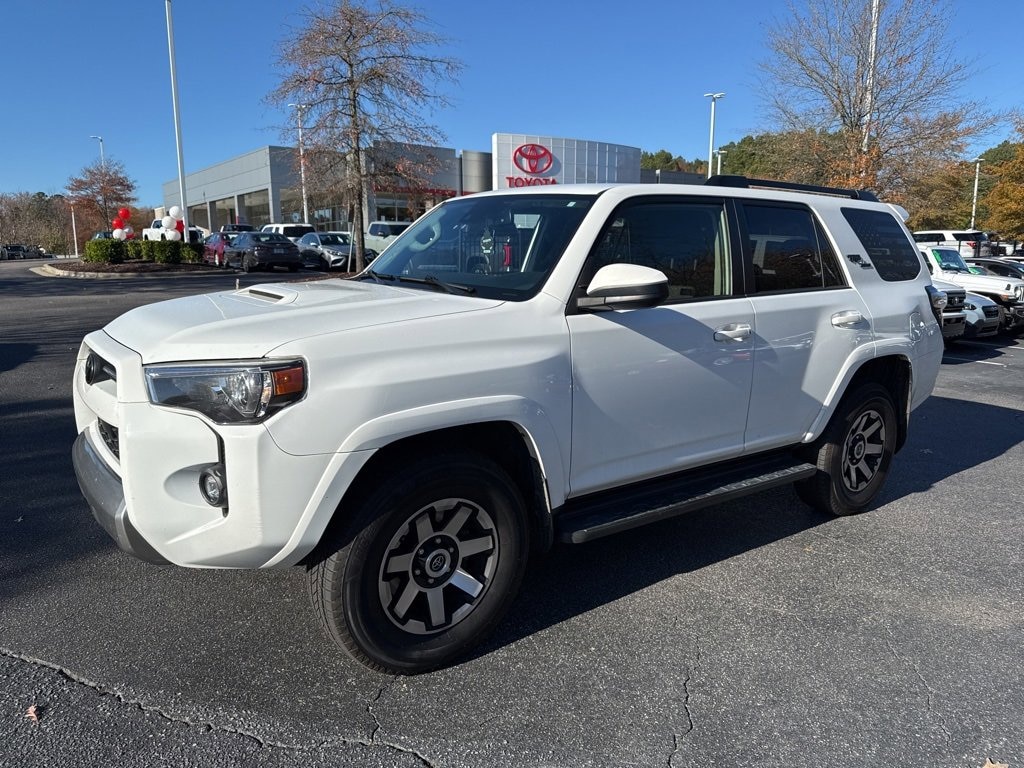 Clean CARFAX. Super White 2021 Toyota 4Runner TRD Off-Road 4WD 5-Speed Automatic with Overdrive 4.0L V6 SMPI DOHC AS IS CAR, LOCAL TRADE IN, BACK UP CAMERA, 4-WHEEL DRIVE, PRE-COLLISION SYSTEM W PEDESTRIAN DETECTION, LANE DEPARTURE ALERT W STEERING ASSIST, APPLE CARPLAY & ANDROID AUTO, NO ACCIDENTS, MUST SEE!, 4WD, Black/Graphite w/Fabric Seat Trim, 8 Speakers, ABS brakes, Air Conditioning, AM/FM radio: SiriusXM, Anti-whiplash front head restraints, Apple CarPlay/Android Auto, Auto High-beam Headlights, Compass, Electronic Stability Control, Exterior Parking Camera Rear, Fabric Seat Trim, Front Center Armrest, Front wheel independent suspension, Leather Shift Knob, Outside temperature display, Power driver seat, Power steering, Power windows, Rear window defroster, Speed-sensing steering, Steering wheel mounted audio controls, Telescoping steering wheel, Traction control, Wheels: 17 x 7.5 7-Spoke Unique Off-Road Alloy.