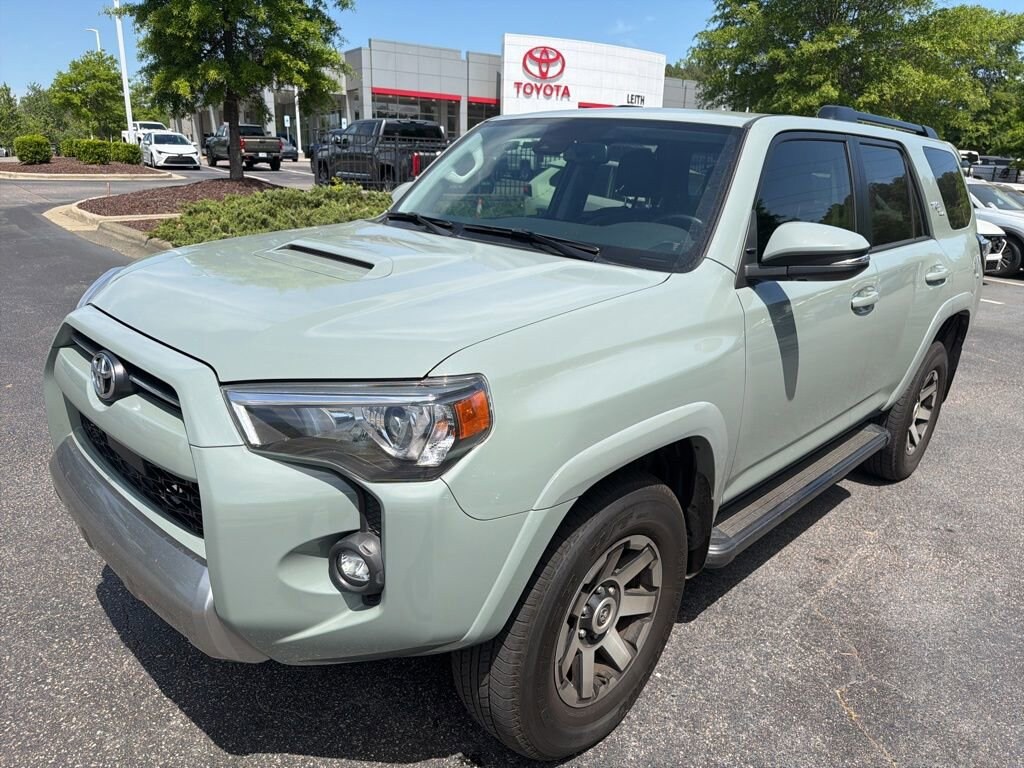 Clean CARFAX. CARFAX One-Owner. Lunar Rock 2023 Toyota 4Runner TRD Off-Road Premium 4WD 5-Speed with ECT 4.0L V6 DOHC 24V Clean Carfax 1 Owner/No Accident Vehicle, LOCAL TRADE IN, BACK OF CAMERA, LEATHER, HEATED SEATS, SUNROOF, NAVIGATION, 4-WHEEL DRIVE, SMART KEY W PUSH BUTTON START, PRE-COLLISION SYSTEM W PEDESTRIAN DETECTION, FULL-SPEED RANGE DYNAMIC RADAR CRUISE CONTROL, LANE DEPARTURE ALERT W STEERING ASSIST, BLIND SPOT MONITOR W REAR CROSS-TRAFFIC ALERT, APPLE CARPLAY & ANDROID AUTO, 1-OWNER, NO ACCIDENTS, MUST SEE!, 4WD, Black/Graphite w/SofTex Seat Trim, 8 Speakers, ABS brakes, Air Conditioning, Anti-whiplash front head restraints, Apple CarPlay/Android Auto, Auto High-beam Headlights, Auto-dimming Rear-View mirror, Compass, Electronic Stability Control, Exterior Parking Camera Rear, Front Bucket Seats, Front wheel independent suspension, Garage Door Opener, Garage door transmitter: HomeLink, Heated Front Bucket Seats, Leather Shift Knob, Moonroof Package, Moonroof w/Tilt Up & Slide, Navigation System, Power driver seat, Power steering, Power windows, Radio: Premium Audio w/Dynamic Navigation, Rear seat center armrest, Rear window defroster, Remote keyless entry, SofTex Seat Trim, Speed-sensing steering, Steering wheel mounted audio controls, Telescoping steering wheel, Traction control, Turn signal indicator mirrors, Wheels: 17 Unique 7-Spoke Off-Road Alloy.