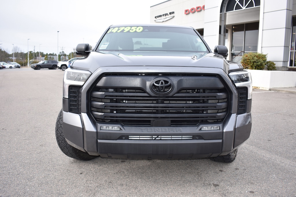 CARFAX One-Owner. Magnetic Gray Metallic 2023 Toyota Tundra SR5 4WD 10-Speed Automatic 3.4L V6 18" Alloy Wheels, 3.31 Axle Ratio, 32 Gallon Fuel Tank, 4-Way Adjustable Front Bucket Seats, 4-Wheel Disc Brakes, 8-Way Power-Adjustable Heated Front Seats, 9 Speakers, ABS brakes, Air Conditioning, Alloy wheels, AM/FM radio: SiriusXM, Apple CarPlay/Android Auto, Auto High-beam Headlights, Automatic temperature control, Blind Spot Monitor w/Lane Change Assist, Brake assist, Bumpers: body-color, Delay-off headlights, Dual front impact airbags, Dual front side impact airbags, Electronic Stability Control, Emergency communication system: Safety Connect (10-year trial), Exterior Parking Camera Rear, Fabric Seat Trim (FB), Front anti-roll bar, Front fog lights, Front wheel independent suspension, Fully automatic headlights, Heated door mirrors, Illuminated entry, Knee airbag, Low tire pressure warning, Occupant sensing airbag, Outside temperature display, Overhead airbag, Panic alarm, Parking Support Alert/Brake, Power door mirrors, Power steering, Power windows, Radio data system, Radio: Audio Multimedia System, Rear step bumper, Rear window defroster, Remote keyless entry, Safety Connect, Security system, SofTex Seat Trim, Speed control, Speed-sensing steering, Split folding rear seat, SR5 Convenience Package, SR5 Premium Package, Steering wheel mounted audio controls, Tachometer, Telescoping steering wheel, Tilt steering wheel, Traction control, Trip computer, Variably intermittent wipers, Voltmeter.