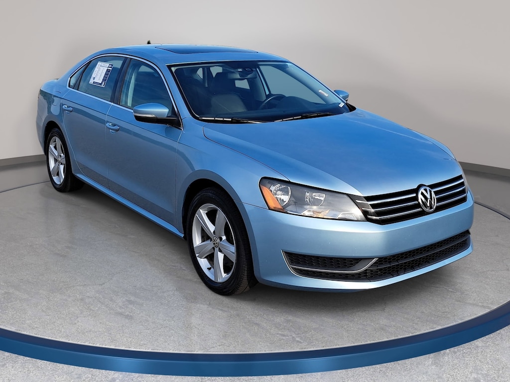 Glacier Blue Metallic 2013 Volkswagen Passat 2.5 SE FWD 6-Speed Automatic 2.5L 5-Cylinder DOHC Non-Smoker, Titan Black w/V-Tex Leatherette Seating Surfaces, 17" Sonoma Alloy Wheels, Air Conditioning, Brake assist, Electronic Stability Control, Four wheel independent suspension, Front Bucket Seats, Fully automatic headlights, Heated front seats, Power driver seat, Power moonroof, Radio: Premium 8 Touch-Screen w/6-CD Changer, Remote keyless entry, Speed-sensing steering, Split folding rear seat, Steering wheel mounted audio controls, Traction control, V-Tex Leatherette Seating Surfaces, Variably intermittent wipers.