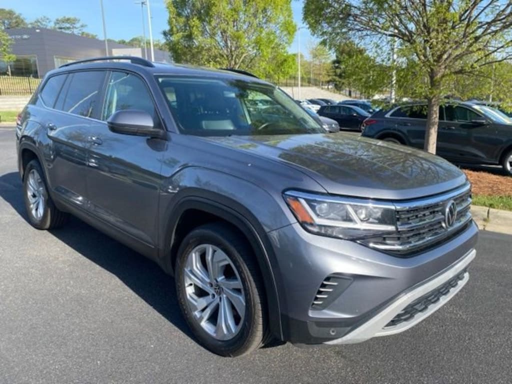 Platinum Gray Metallic 2021 Volkswagen Atlas 3.6L V6 SE w/Technology AWD 8-Speed Automatic with Tiptronic 3.6L VR6 3.60 Axle Ratio, 3rd row seats: split-bench, Automatic temperature control, Brake assist, Electronic Stability Control, Exterior Parking Camera Rear, Forward collision: FCW w/Autonomous Emergency Braking mitigation, Front dual zone A/C, Front fog lights, Fully automatic headlights, Heated front seats, Perforated V-Tex Leatherette Seating Surfaces, Power driver seat, Power Liftgate, Radio: Composition Media w/8" Touchscreen, Rain sensing wipers, Rear air conditioning, Rear window wiper, Remote CD player, Remote keyless entry, Split folding rear seat, Steering wheel mounted audio controls, Wheels: 20" 5-Spoke Silver Alloy.