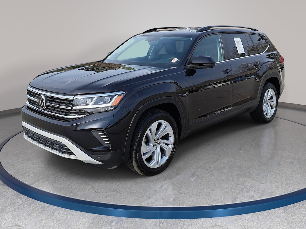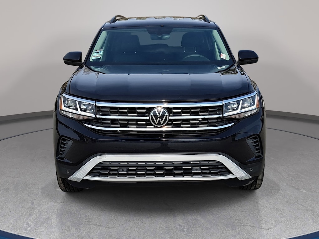 Deep Black Pearl 2021 Volkswagen Atlas 3.6L V6 SE w/Technology AWD 8-Speed Automatic with Tiptronic 3.6L VR6 3.60 Axle Ratio, 3rd row seats: split-bench, Brake assist, Exterior Parking Camera Rear, Forward collision: FCW w/Autonomous Emergency Braking mitigation, Four wheel independent suspension, Front Bucket Seats, Front dual zone A/C, Fully automatic headlights, Heated front seats, Perforated V-Tex Leatherette Seating Surfaces, Power driver seat, Power Liftgate, Radio: Composition Media w/8" Touchscreen, Rain sensing wipers, Rear air conditioning, Remote keyless entry, Speed-sensing steering, Split folding rear seat, Steering wheel mounted audio controls, Wheels: 20" 5-Spoke Silver Alloy.
